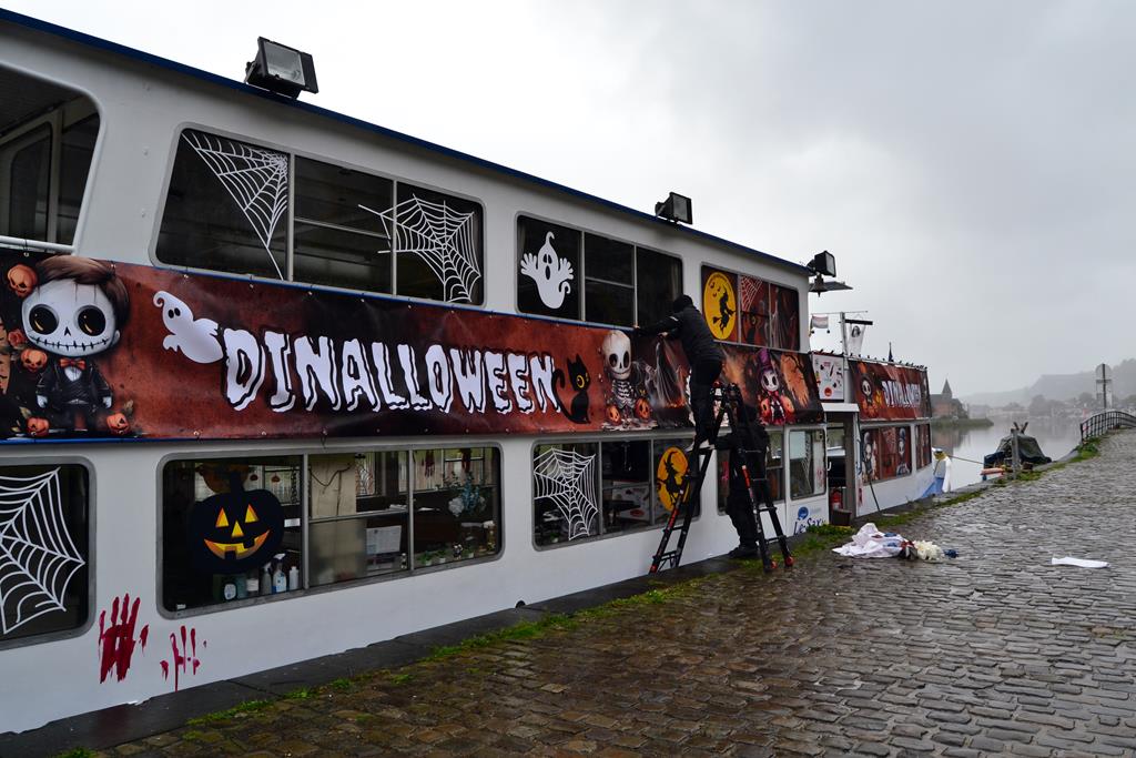 Création graphique, impression et lettrage du Bateau "Le Sax" de Dinant Evasion pour Halloween